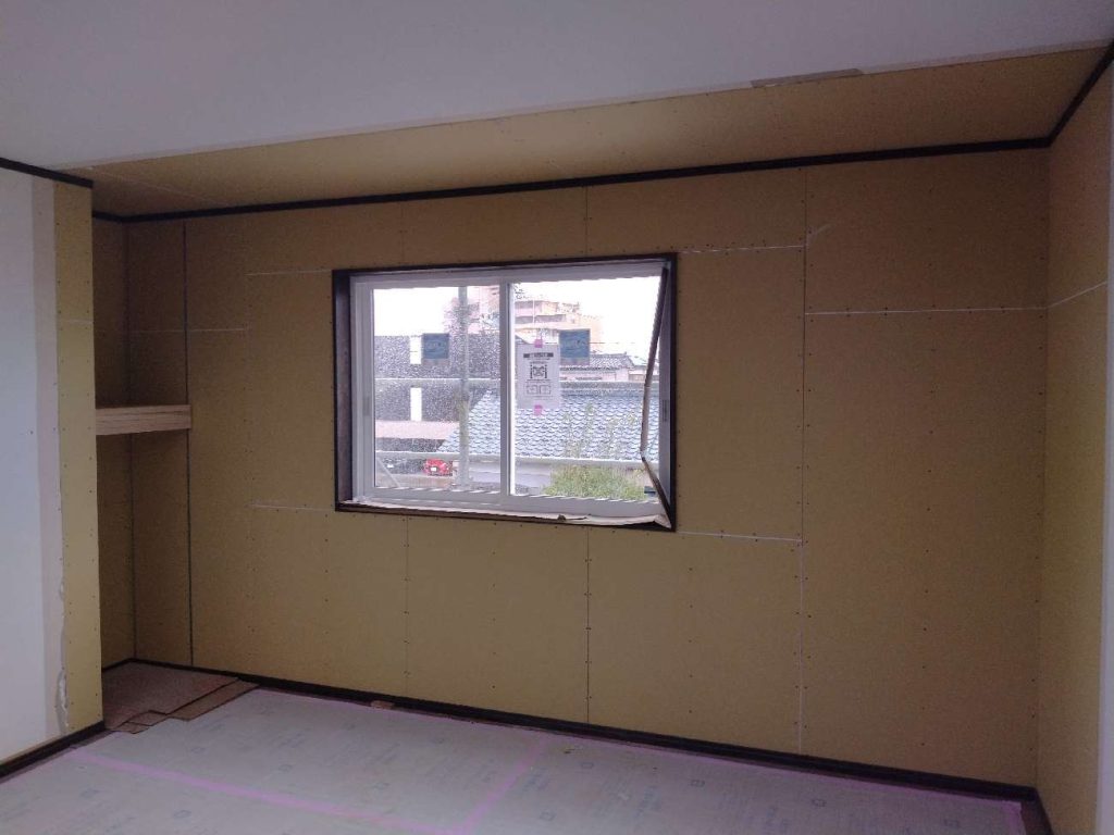 内部では、大工工事がすべて完了し、これからクロス工事に入っていきます。