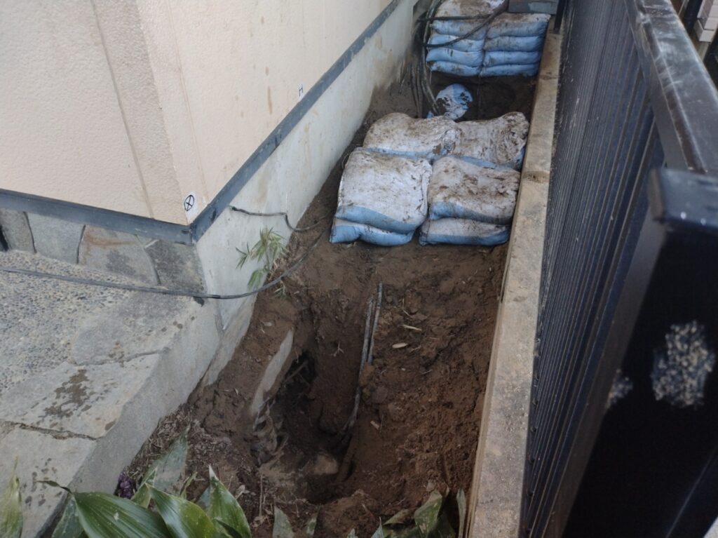 掘り進めるにつれて砂質地盤ということもあり、多くの水を含んでいる状況であることが分かりました。